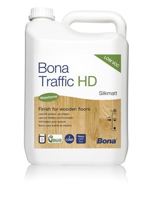 Bona traffic HD:2-komponent, vandbaseret lak. Lakken er klar, ikke gulende og har en ekstrem slidstyrke. Desuden er den vandresistent. -Det klart stærkest produkt på markedet.